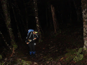 We left Nelson after five o'clock and drove to Robert Ridge car park above Lake Rotoiti. Left the car at 1838 and off up the Speargrass valley to the hut of the same name for the night.